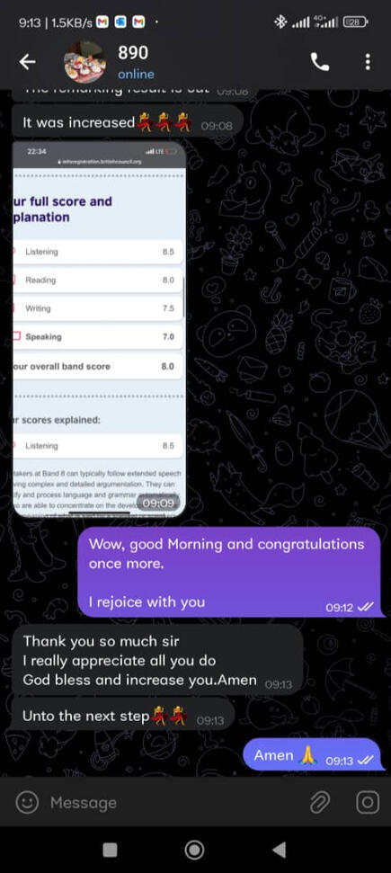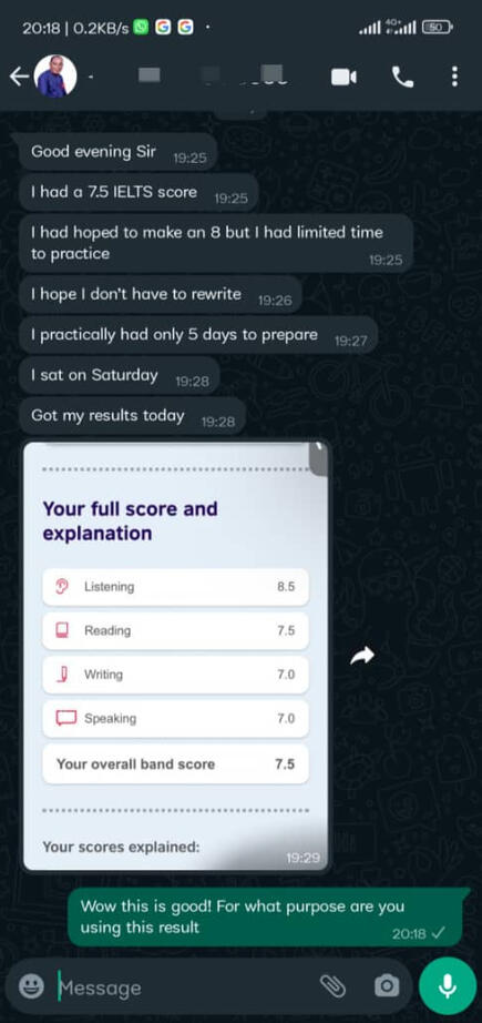 My name is Emmanuel Geoffrey,An IELTS expert with 8 years of experience in the IELTS training.And over the years, I’ve helped more than 1,500 ielts candidates break free from the cycle of failure, move abroad, secure jobs…And achieve their dreams.But it didn’t start that way.When I first got into IELTS training, I noticed something troubling.I saw so many ielts candidates doing everything right (studying for months, buying books, hiring tutors)…Yet still failing to score above Band 7.Some of them even spoke very good English, but still… their results kept betraying them.So they ended up wasting money retaking the exam (sometimes multiple times)…Before they could score above band 7…While some even gave up completely.This really bothered me.I knew something wasn’t adding up.