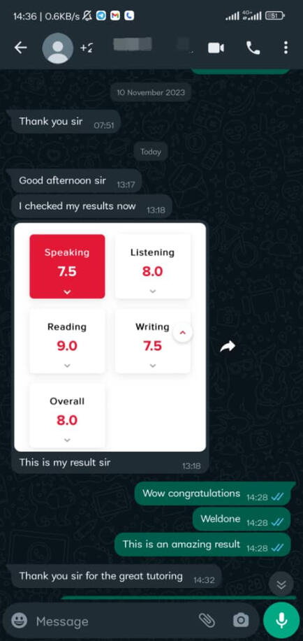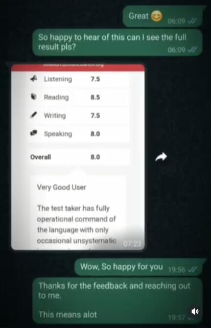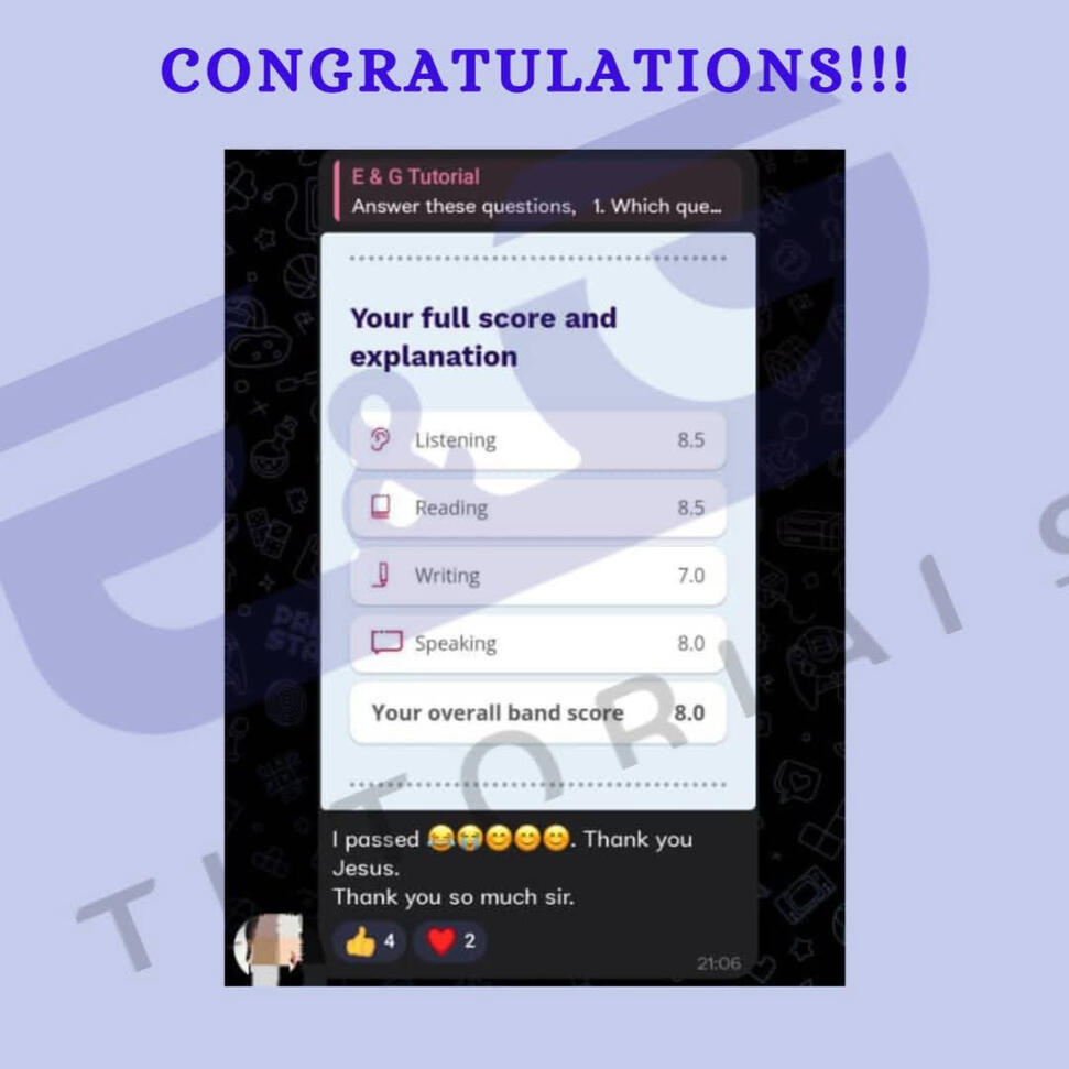 The outcome?In just a few weeks, he was able to get a band 8.0.Today, he isn’t just celebrating his success.He’s celebrating freedom from the cycle of failure.