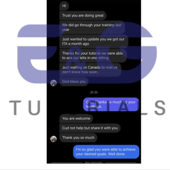 Because that’s exactly what these people want.And along this path, I met some like-minded people who shared the same passion as me.Together, we decided to join forces…And fight against this system that has vowed to keep Nigerians stuck in a cycle of frustration.That decision gave birth to E & G Tutorial…A partnership built to help every IELTS candidate score a band 7.5 or higher…So you can fulfill their dream of moving abroad.