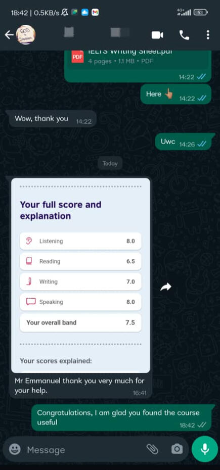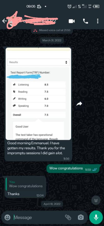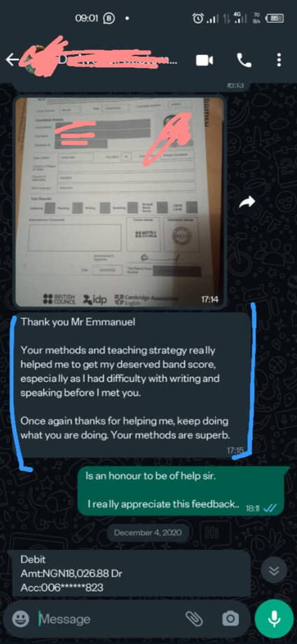 My name is Emmanuel Geoffrey,An IELTS expert with 8 years of experience in the IELTS training.And over the years, I’ve helped more than 1,500 ielts candidates break free from the cycle of failure, move abroad, secure jobs…And achieve their dreams.But it didn’t start that way.When I first got into IELTS training, I noticed something troubling.I saw so many ielts candidates doing everything right (studying for months, buying books, hiring tutors)…Yet still failing to score above Band 7.Some of them even spoke very good English, but still… their results kept betraying them.So they ended up wasting money retaking the exam (sometimes multiple times)…Before they could score above band 7…While some even gave up completely.This really bothered me.I knew something wasn’t adding up.
