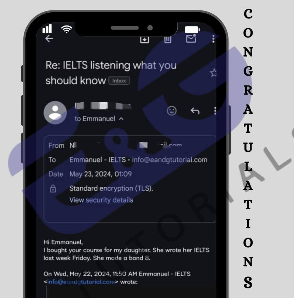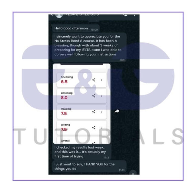 Because that’s exactly what these people want.And along this path, I met some like-minded people who shared the same passion as me.Together, we decided to join forces…And fight against this system that has vowed to keep Nigerians stuck in a cycle of frustration.That decision gave birth to E & G Tutorial…A partnership built to help every IELTS candidate score a band 7.5 or higher…So you can fulfill their dream of moving abroad.